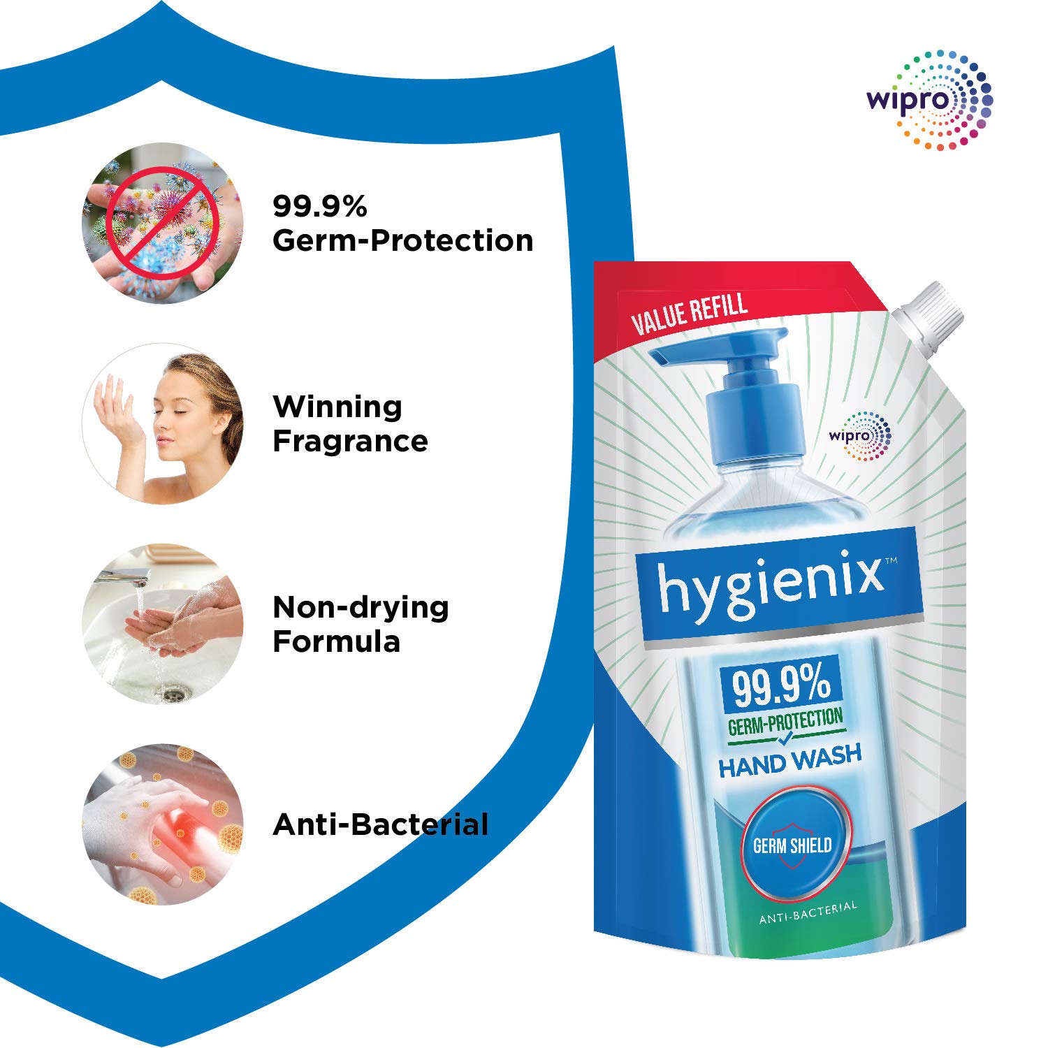 Hygienix जर्म प्रोटेक्शन हैंडवाश आपको 99.9%* कीटाणुओं से सुरक्षा देता है एक सुखद और ताज़ा खुशबू के साथ बार-बार उपयोग के बाद भी आपके हाथ को स्मूद और सॉफ्ट रखता है अपने हाथों को सुरक्षित रखने और अपने परिवार को सुरक्षित रखने के लिए Hygienix जर्म प्रोटेक्शन हैंडवॉश के साथ नियमित रूप से अपने हाथों को धोएं