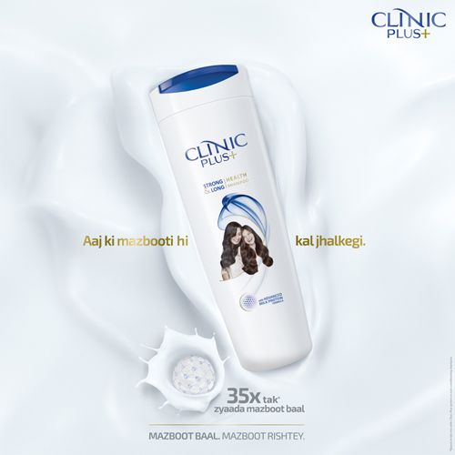 Tomorrows strong and long hair needs a strong foundation today! Clinic Plus Strong & Long Health Shampoo with the goodness of milk protein makes your hair 35 x stronger. Its advanced milk protein formula contains an essential protein element which body cannot produce. This essential protein penetrates into each hair strand providing nourishment every time you wash your hair with Clinic plus shampoo. For best results wash your hair daily with Clinic Plus Strong & Long Health shampoo. Use Clinic Plus conditioner every time you shampoo for soft and silky hair.Features & Benefits- Clinic Plus Strong & Long Health shampoo nourishes and makes hair upto 35x strongerWorks gently on your hair from root to tip Can be used by the whole familySuitable for all hair typesThe milk protein penetrates each hair strand providing nourishment each time you wash your hair For best results wash your hair daily with Clinic Plus Strong & Long Health shampoo